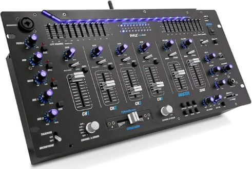 | Description: | Pyle 6 Channel Mixer DJ Controller W/ Bluetooth, LED Illumination, Slider Controls, Speed Control & 10 Band Equalizer 5U Rack Mount System | |||