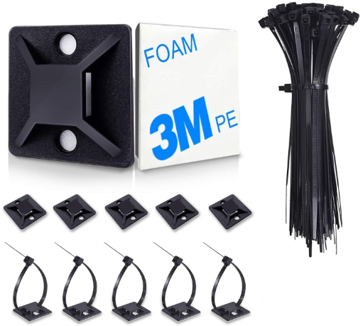| Description: | Huasai 4/5" Self-Adhesive-Backed Zip Tie Mount W/ Cable Ties, Black, 100-Pack | |||