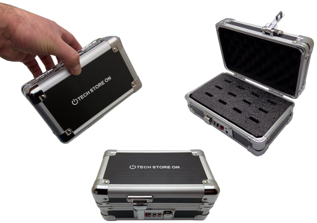 | Description: | Tech Store On 12-Slot USB Drive Aluminum Organizer Case W/ Combination Lock | |||