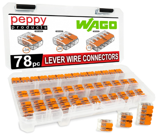 Description: | Peppy Products WAGO 221 Lever Nuts W/ Case, 78 Assorted Pieces | |||