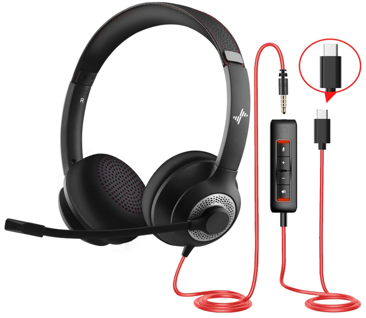 | Description: | Jiamqishi USB On-Ear Headset W/ Noise Cancelling Microphone, Type C + 3.5mm, Black | |||