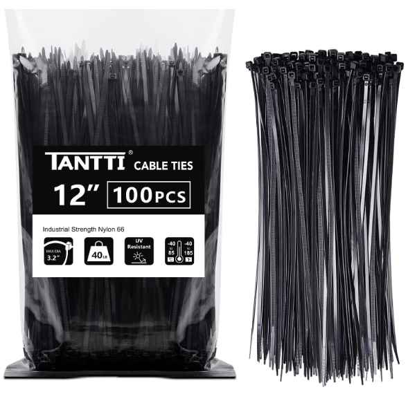 | Description: | Tantti 12" Zip Ties, Black, 100-Pack | |||