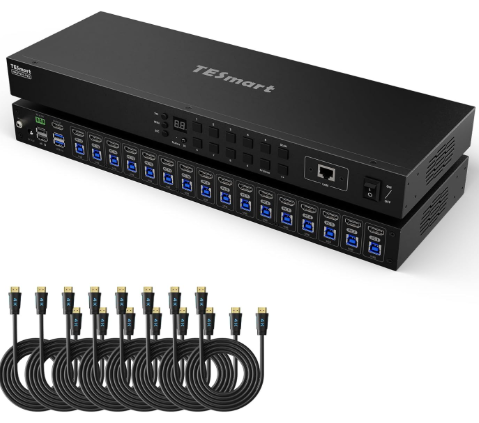 | Description: | TESmart 16X1 HDMI KVM Switch USB 3.0, 4K@60Hz Rackmount KVM W/ 8x 5ft KVM Cables | |||