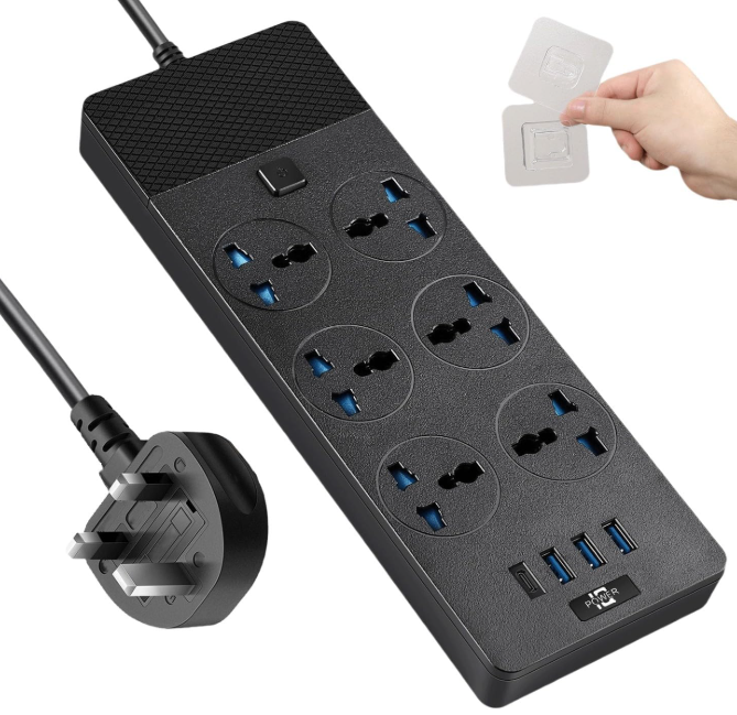 | Description: | Jumpso Power Strip W/ 6x International Outlets & 4 USB Ports (1 USB C), UK To US Plug Adapter, 110-240v, 3000w & 6Ft Extension Cord | |||