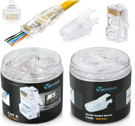 | Description: | Everest Media Solutions RJ45 Cat6 Pass Through Connectors And Strain Relief Boots, 100-Pack Of Each | |||
