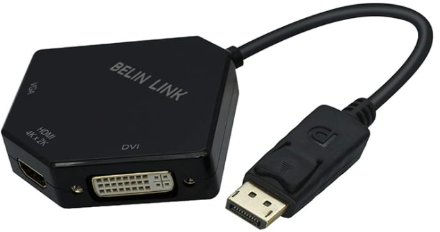 | Description: | Belin Link 3-in-1 Male DP To Female HDMI, VGA & DVI Adapter, Gold-Plated, Diamond Shaped | |||