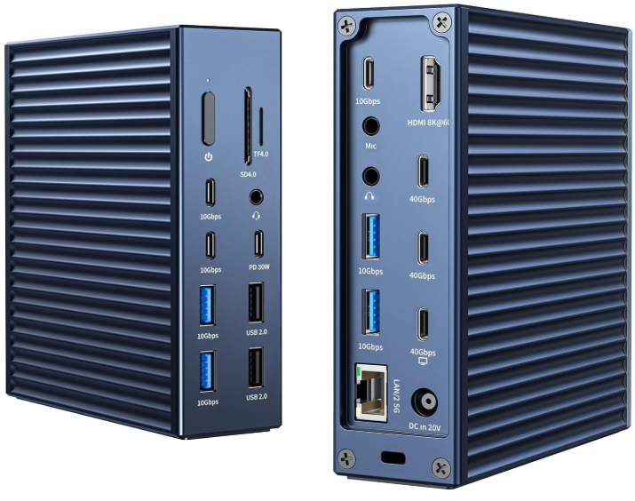 | Description: | Acasis 21-Port Thunderbolt 4 Dock w/ 8K60Hz HDMI, 2.5 GbE Ethernet, SD/TF 4.0, 10Gbps 7x USB C/A & 3.5mm Audio, Navy Blue | |||