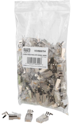| Description: | Klein Tools Pass-Thruâ„¢ Modular Data Plug, RJ45-CAT6A, Shielded (STP), 100-Pack | |||