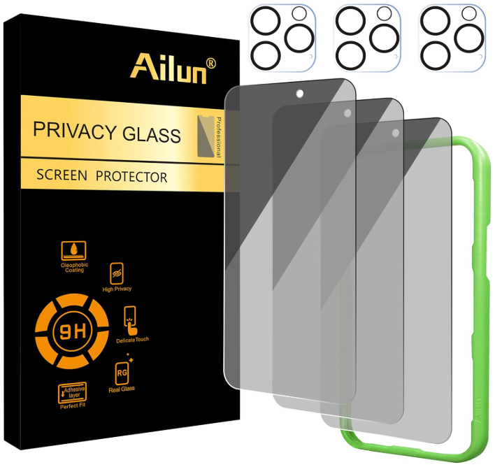 | Description: | Ailun Anti Spy Tempered Glass Screen Protector W/ 3-Pack Camera Lens Protector For 6.3" IPhone 16 Pro, 3-Pack | |||