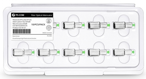| Description: | FS SC/APC Singlemode Fixed Fiber Optic Attenuator, Male-Female, 10dB, 10-Pack | |||
