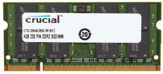 | Description: | Crucial Memory 4GB 200-pin SODIMM DDR2 PC2-6400 Module CT51264AC800 Bare | |||