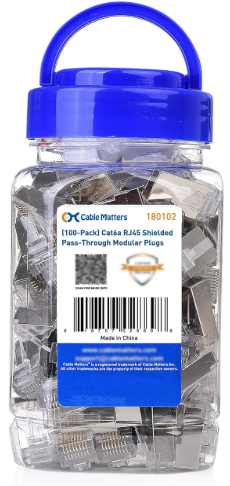 | Description: | Cable Matters CAT6A Shielded Pass Through RJ45 Connecters, 100-Pack | |||