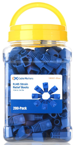 | Description: | Cable Matters CAT6 / CAT5e RJ45 Strain Relief Boots For 6.5mm Ethernet Cables, Blue, 200-Pack | |||