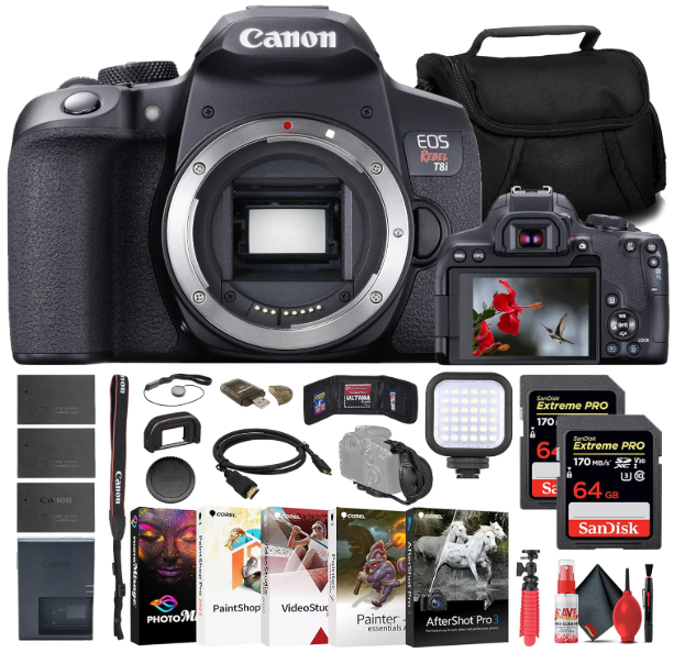 | Description: | Canon EOS Rebel T8i DSLR Camera (Body Only) Bundle Array | |||