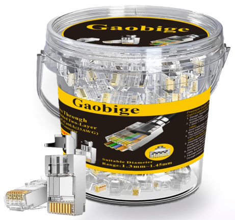 Description:Gaobige CAT7, CAT6A, RJ45 Shilded Modular Plug Pass Through Connectors, 100-Pack