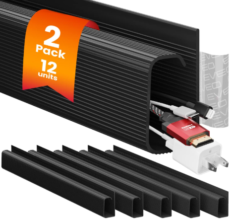 Description:Eveo Under Desk Cable Management Tray, , 192ft, J Channel, Black, 12-Units