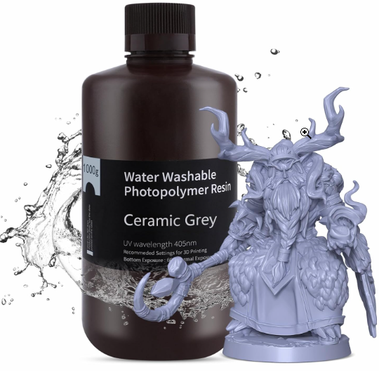 | Description: | Elegoo Water Washable 3D Printer Resin, 405nm Rapid UV Curing Standard Photopolymer Resin, Frey, 1000g | |||