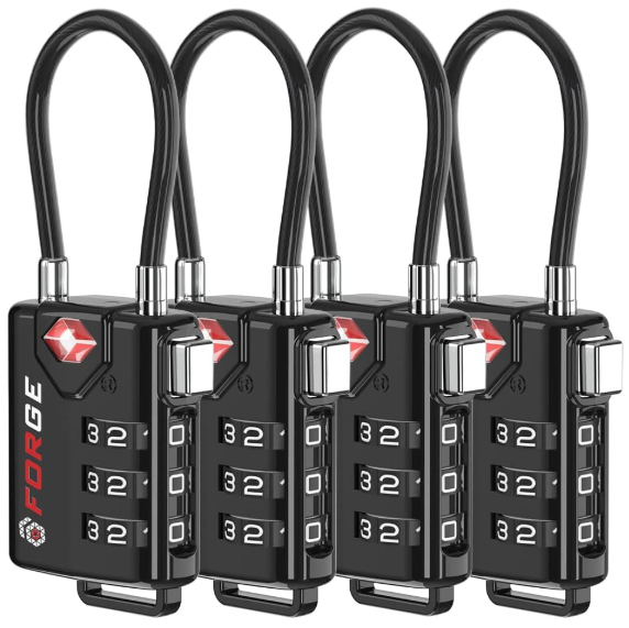 | Description: | Forge TSA Approved Cable Luggage Locks W/ Alloy Body, Black, 4-Pack | |||
