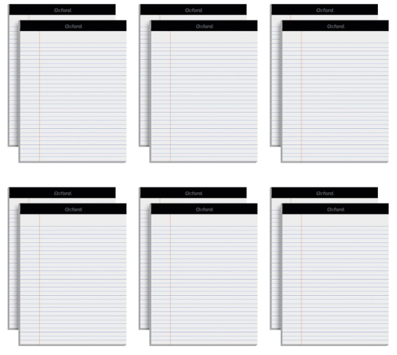 | Description: | Oxford 8.5" X 11" Wide Ruled, White Paper, 50-Sheets Legal Pads, 12-Pack | |||