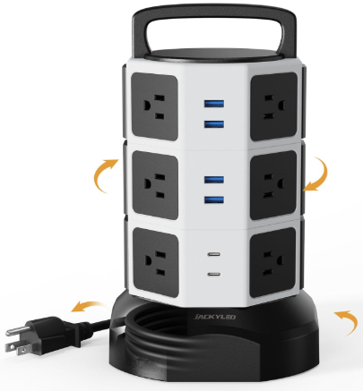 | Description: | Jackyled Stip Tower Surge Protector Charging Station W/ 12x Outlets & 6x USB (2x USB-C) Ports & 6.5ft Extension Cord | |||