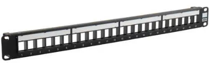 | Description: | Hubbell Multimedia Jack Panel, Flat, Straight, Unloaded, 24-Port, 1RU, 19" Width X 1.75" Height, Black | |||