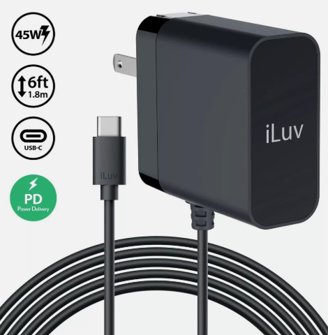 | Description: | ILuv 45W Fast Wall Charger W/ 6ft USB-C Cable | |||