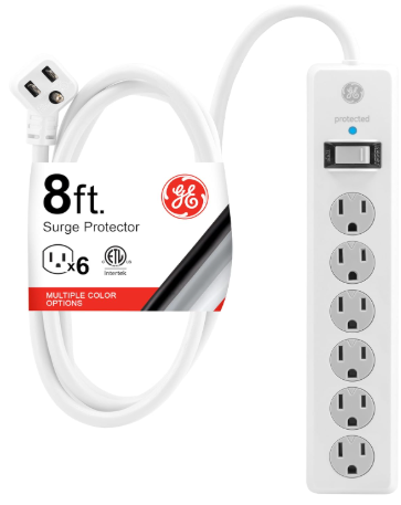 | Description: | GE 6-Outlet Surge Protector W/ 8ft Extension Cord, White | |||