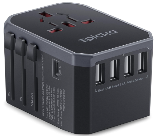 | Description: | Epicka Universal Travel Adapter Wall Charger W/ 5.6A Smart Power & 3.0A USB-C, Grey | |||