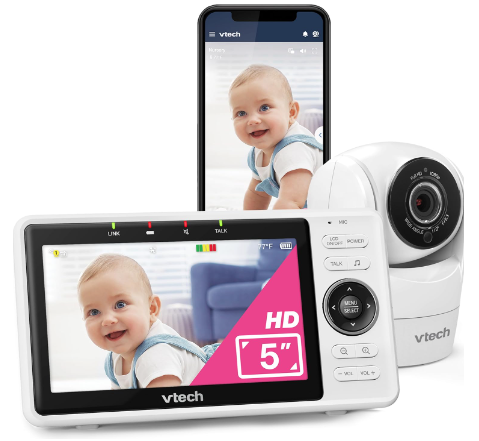| Description: | VTech Upgraded Smart WiFi Baby Monitor, 5-inch, 720p Display, 1080p Camera, HD NightVision, Remote Pan / Tilt / Zoom, 2-Way Talk | |||