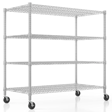 | Description: | Homdox Heavy Duty Metal Shelves, 4 Adjustable Wire Chrome Shelves, Wheels, 24" X 48" X 72", Chrome | |||