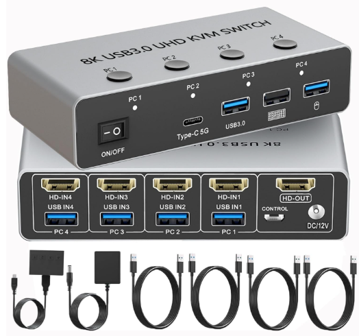| Description: | Yukidoke 8K KVM Switch 4 Port, 4 Computers Share 1 Monitor, HDMI Switcher With USB 3.0 & USB-C Hub | |||