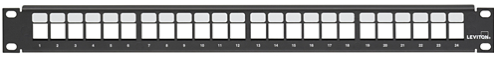 | Description: | Leviton Flat QUICKPORTâ„¢ Patch Panel, 24-Port, 1RU, Black, Cable Management Bar Not Included | |||