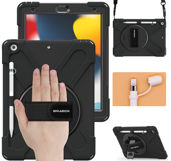 | Description: | Braecn Drop-Proof Case W/ Kickstand, Hand Strap, Shoulder Strap & Pencil Holder For 7th, 8th & 9th Generation IPad, Black | |||