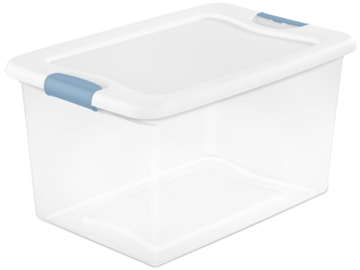 | Description: | Sterilite Latching, Stackable Storage Box W/ White Lid, Clear, 64 Quart, 12-Pack | |||