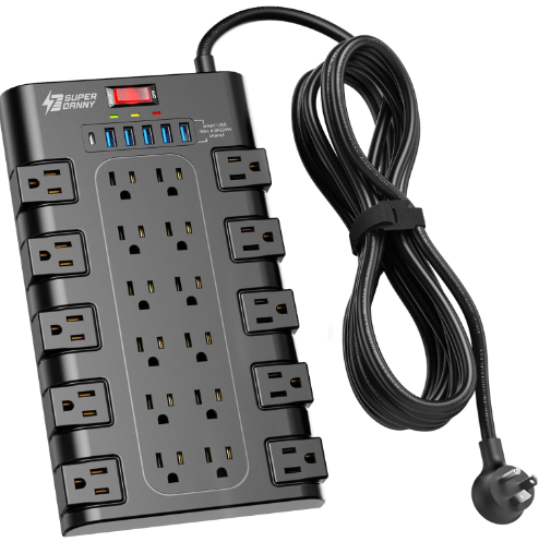 | Description: | Superdanny Power Strip Surge Protector W/ 22x AC Outlets, 6x USB Charging Ports & 15ft Extension Cord, Black | |||