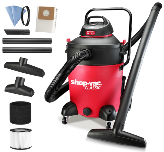 | Description: | Shop-Vac 14 Gallon 6.5-Peak HP Wet/Dry Cacuum W. Filter, Hose & Accessories | |||