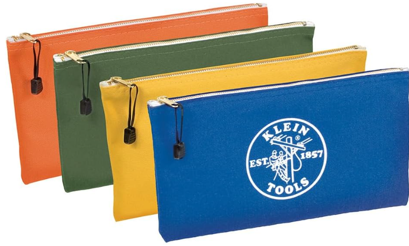 | Description: | Klein Tools Canvas Zipper Bag, Tool Pouch, 12.5" X 7", 4-Pack | |||