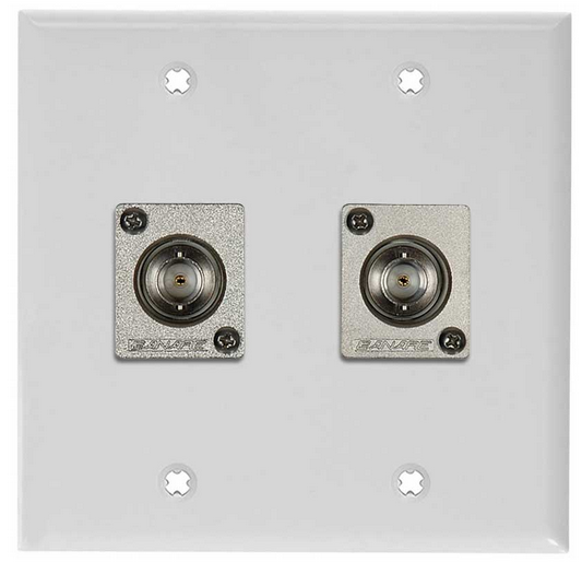| Description: | My Custom Shop 2-Gang White Lexan Wall Plate W/ 2 Canare BCJ-JRUk 12G-SDI Recessed BNC Barrels | |||