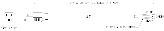 | Description: | World Cord NACC Power Whip NEMA 5-15P To Open Ended 2 ROJ 1/4 Strip 10A 125V, 3ft | |||