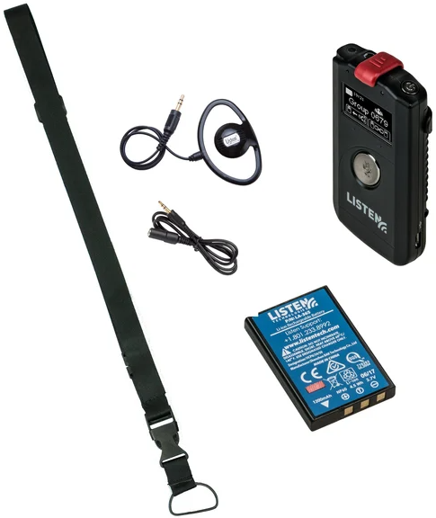 | Description: | Listen Technologies ListenTALK Transceiver W/ Lanyard, Ear Speaker & Battery | |||