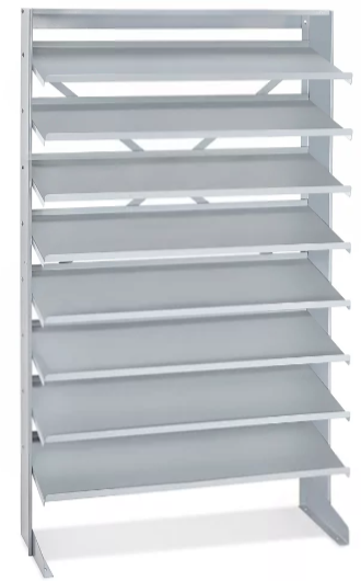 | Description: | Uline Single Sided Stationary Gravity Shelf Bin Organizer, 35 7/8"W X 13 1/2"D X 61"H Array | |||