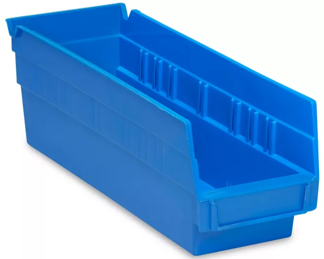 | Description: | Uline Plastic Shelf Bin, 4" X 12" X 4", Blue, 20-Pack | |||