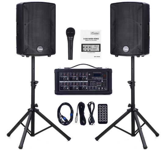 | Description: | Exoton 12" 2000W Bluetooth PA System W/ Powered Mixer Set, 6x Channel Mixer, Stands, Mic & Effect Controller | |||