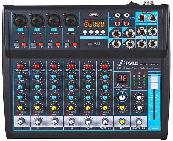 | Description: | Pyle Professional 8 Channel Digital USB Bluetooth MP3 Audio Mixer Sound Board Array | |||