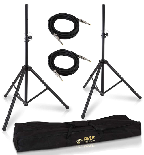 | Description: | Pyle Height Adjustable 3.6’ -5.6’ Universal Stand Kit W/ 2x Stands, 2x 21’ X 1/4" Audio Cables, Black & Carring Bag | |||