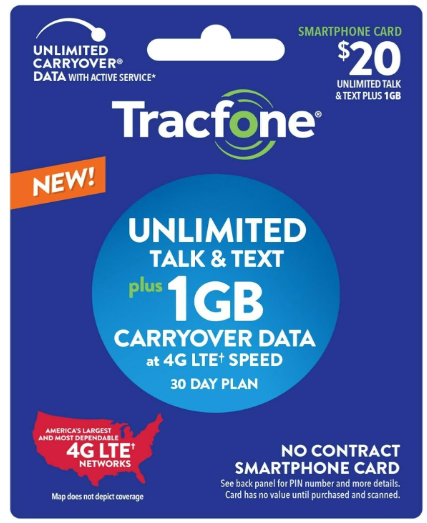 | Description: | TracFone $20 Unlimited Talk, Text, 1GB Data 30–Day Plan | |||