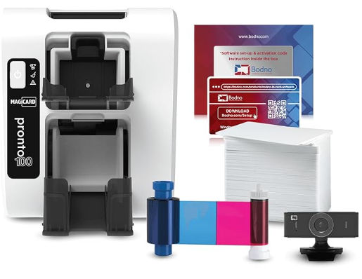 | Description: | Bodno Magicard Pronto 100 ID Card Printer & Complete Supplies Package ID Software And Camera - Silver Edition | |||