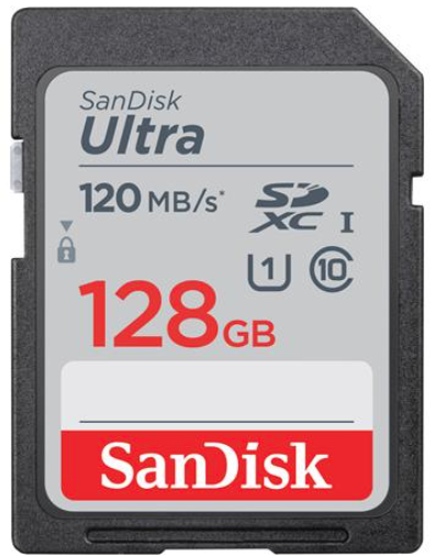 | Description: | SanDisk 128GB Ultra UHS-I Class 10 U1 SDXC Memory Card, 120MB/s Read, 10MB/s Write | |||