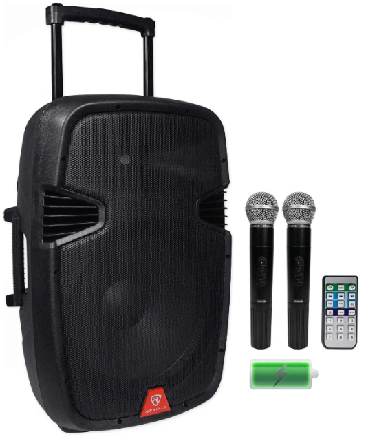 | Description: | Rockville 15" Bluetooth, Rechargeable Powered 800W PA Speaker W/ 2x Microphones & Stand | |||