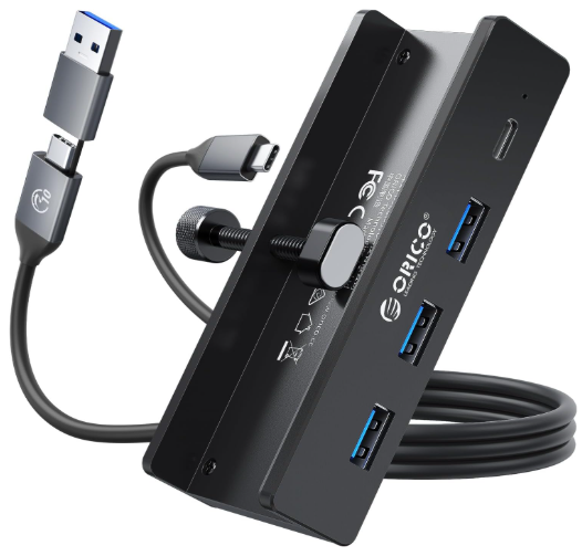 Description:Orico USB Aluminum 4-Port Adapter Hub 3.0 W/ 3x USB-A Data Ports, 1x USB-C Port & Extra Power Supply Port, Black